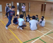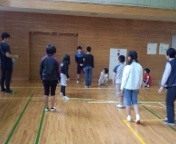 閉室式の前、体育館で、経堂小、明正小、芦花小の子どもたちといっしょに遊びました。ハンカチ落としと、だるまさんがころんだをしました。他の学校の子どもたちと仲良くなりました。