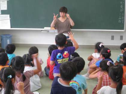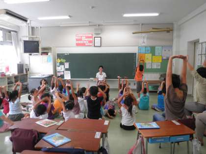 手を動かしたり、休憩のときは体を伸ばしたりと、お話だけでなく、