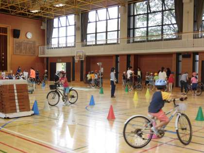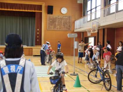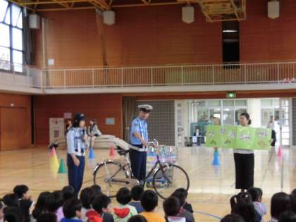 今日の3時間目に体育館で交通安全教室が行われました。成城警察の方による安全のお話や、自転車の点検のやり方を教わった後にコースを走る練習をしました。楽しく学び、自転車のただしい乗り方を知ることができました。