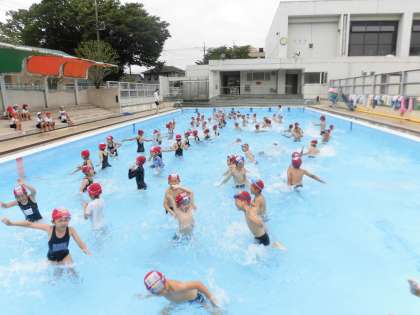 先日のプール開きでは、雨天のために残念ながらプールに入ることができなかった2年生。