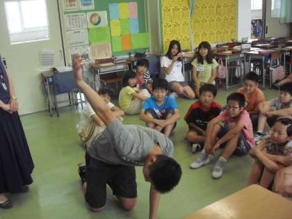 今日の3・4校時に、外国語活動をしました。アメリカ在住の方を特別講師として招き、先週、今週と続けて特別授業をしていただきました。