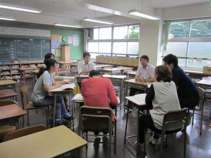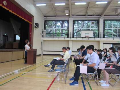 烏山小学校と上祖師谷中学校の教員が集まり、4月に行った学力テストを分析して、温知学舎のとしての授業改善の方向性を話し合いました。まず、全体会で、小学校と中学校の各教科の分析結果と授業改善の視点を報告しあいました。その後、各教科等の部会に分かれて、小中学校で共通して行う授業改善について話し合いました。こうやって、小中9年間を通して、子どもたちの学力を高める取り組みを行っています。