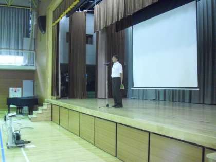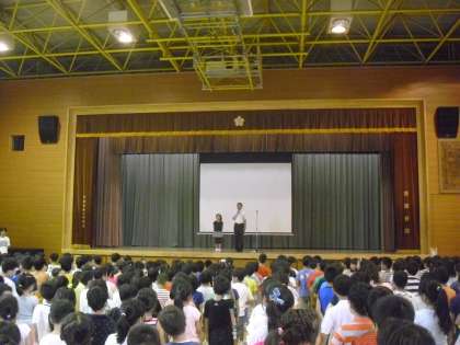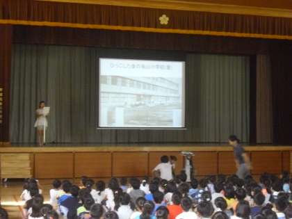 校長先生のお話では、7月1日が開校記念日だったことから、烏山小学校の歴史についてお話がありました。さらに、代表委員の6年生からスライドを使った発表がありました。