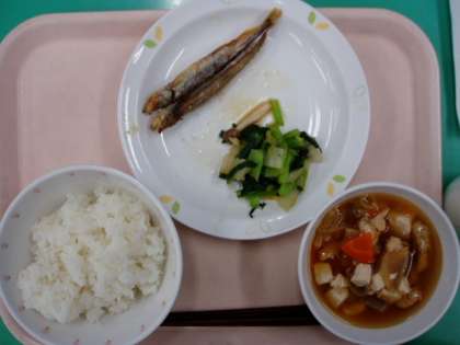 ししゃものから揚げが揚がりました。パリパリと頭からしっぽまで丸ごと食べられますので不足しがちなカルシウムを簡単にとることができます。手作りのだしをたっぷり使った具だくさんのけんちん汁ができあがりました。夏には飲みにくいかもしれませんが、しっかり食事で水分とミネラルを補給してほしいです。