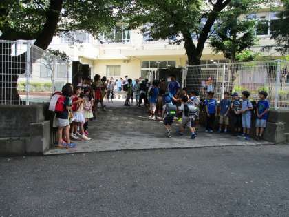 今日のあいさつ当番は、4年生と1年生でした。正門は、1年生担当。あいさつ当番2回目の1年生は、やる気満々!7時55分の集合時間より早く来て、スタンバイ。10分間という短い時間でしたが、友達やお兄さん、お姉さんに大きな声で元気よくあいさつしていました。
