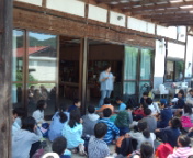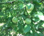 10時20分、関りんご園に着きました。ここでりんごジュースを飲みました。歩いた後なので、「とっても美味しい」と口々に話し出します。関さんにりんごについての話もしてもらいました