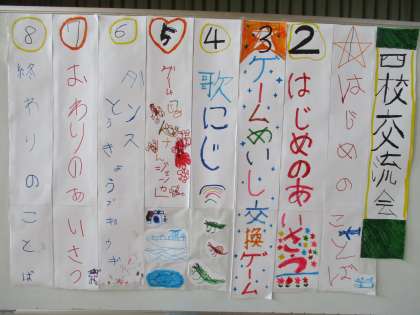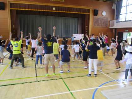 烏山小の子どもたちは、3グループに分かれ、訪問してくれた3つの学校それぞれの友達と先生方を教室や体育館へとご案内し「おもてなし」をしました。また、つくしダンス「東京ブギウギ〜つくしVer.〜」をみんなに教えてあげ、全員で楽しく踊ることができました。たくさんの友達とふれ合い、仲よくなりました。