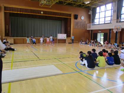2・3時間目に、Aブロックの4校交流会がありました。祖師谷小ぽぷら学級・明正小ひまわり学級・芦花小ひかり学級・烏山小つくし学級の子どもたちが、本校体育館に集まり、歌ったり踊ったり、ゲームをしたりと楽しい時間を過ごしました。
