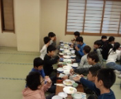 6時40分、2日目の朝食です。今日のハイキングのためによく食べています。また、みんなでいっしょに食べると食も進みます。