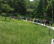 11時、戦場が原を歩いています。男体山がばっちり見えています。心地よい風が吹いて気持ちいいです。花もきれいに咲いています。戦場が原の自然を漫喫して歩いています。
