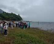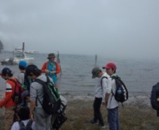 14時、中禅寺湖が霧で真っ白。戦場が原は晴れていたのに。遊覧船は欠航になってしまいました。残念!霧の湖で一休み。