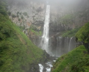 8時、華厳滝到着。霧があって最初はあまり見えず・・・。しかし、だんだんと見えてきました。よかったと。華厳滝の壮大さと、ひんやりした寒さと水しぶきに感激してきました。