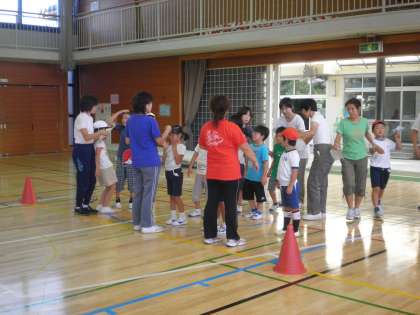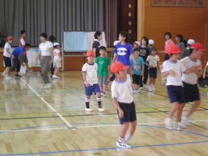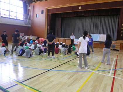 交流会です。みんなで歌を歌ったり、ダンスをしたり、かけっこや玉入れもしました。