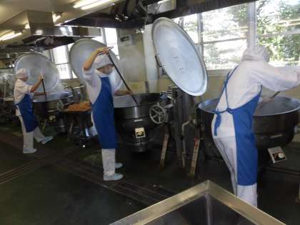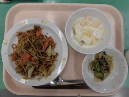 人気献立のソース焼きそばには1人分約100gの野菜が入っています。回転釜を3台つかい、オーブンで蒸し焼きにした麺としっかり炒めた野菜を混ぜています。大好きなソース味で、おいしく野菜が食べられます。