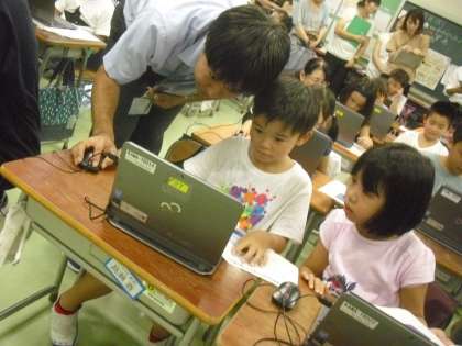 子どもたちが描いたそれぞれの「カプリン」を画像データとして取り込んでおき、それをプレゼンテーションソフト上で意図したとおりに動かすという活動でした。