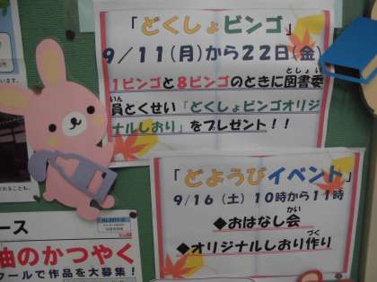 「どくしょビンゴ」も好評で、出された課題に合う本を借りて読み、ビンゴになって、しおりをもらっていく児童が多くなりました。土曜日の図書館開館イベント、先生方による読み聞かせタイム(第2回)とまだまだイベントが続きます。この機会にいろいろな本を読んで、本のおもしろさを味わってみましょう。
