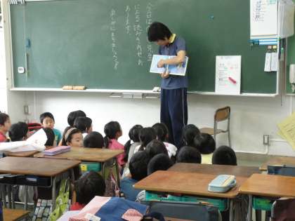 本日、先生方による読み聞かせ(第2回目)が行われました。前回に続き、本の題名も気になりながらも、どなたがいらしてくださるか、子どもたちはワクワクしながら待っていました。読み聞かせが始まるとすぐに本の世界に引き込まれていました。今回は、思わず笑ってしまうような本やうきうきしてくるが多く、「読み聞かせタイムが、あっという間に終わってしまった。」というような声も聞かれました。