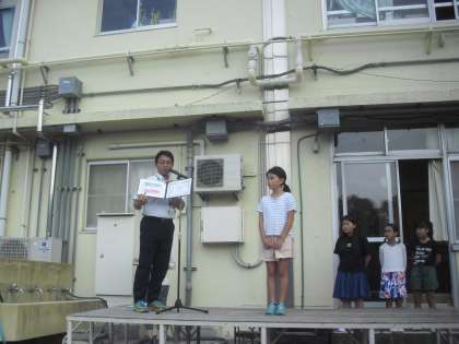続いて、5年生が図工の時間に取り組んだ「歯・口の健康に関するポスターコンクール」で佳作を受賞した子への表彰が行われました。全校の子どもたちが大きな拍手で讃えました。