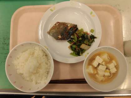 本日の魚はあじです。オーブンでしっかり焼いたあじに、七味たれをかけています。たれに混ぜたしょうがとねぎの香りで魚の臭みが減り、おいしく魚が食べられます。