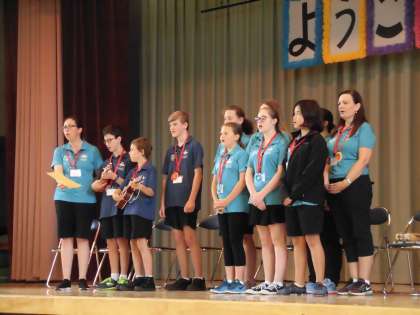 歓迎集会のお礼に訪問団の皆さんが「ウィー・アー・オーストレリアン」の歌をウクレレの美しい音色とともに聞かせてくれました。