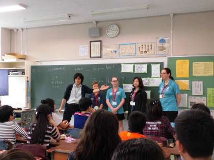 歓迎集会を終えた訪問団の子ども達は、6年生の各学級に入りました。短い時間ですが、これから昼休みまで、烏山小学校の6年生として日本の小学校を体験します。