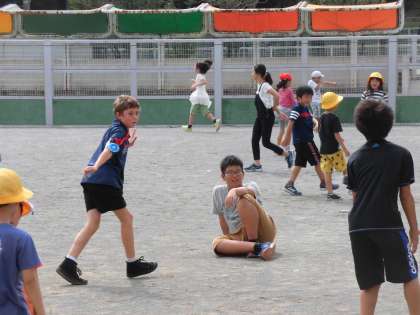 降り注ぐ日差しの中、校庭を走り回る姿は日本の子ども達と何ら変わりはありません。いつの間にか打ち解けて、全力で遊んでいました。