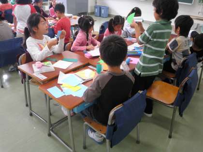 1年生は、明日のキッズフェスティバルの準備です。