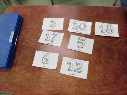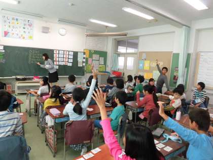 本日、1組と2組で英語活動があり、数の数え方について学習しました。数のビンゴゲームや数取りゲームをして、楽しんで英語に親しむことができました。