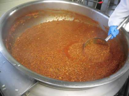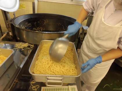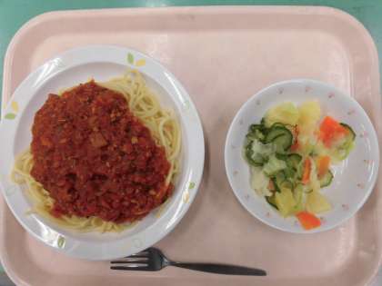 子どもたちが大好きなミートソースができました。たまねぎ・にんじん・ピーマン・大豆などがみじん切りになってたっぷり入っているので、おいしく野菜が食べられます。スパゲティにたっぷりかけて頂きます。