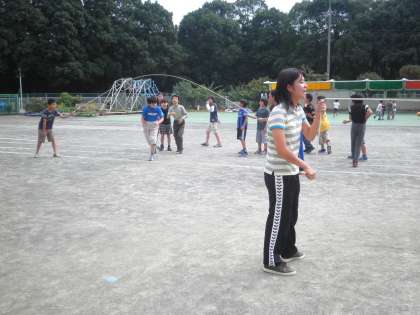 昼休みに校庭をみると、6年の3クラスが大縄をしています。