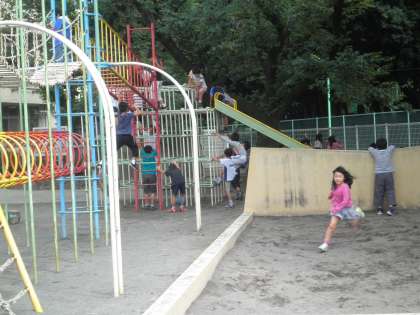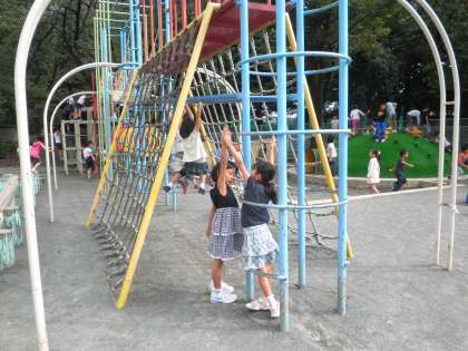 ジャングルジムや上り棒、いろいろな遊具を使ってみんな楽しく遊んでいます。