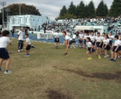 14時30分、クラスごと3分間で何回、長縄を跳べるか記録をとる競技です。子どもたちは今までの練習で積み上げた目標記録をクリアできるように、心を一つにしてがんばりました。そして、閉会式。自分の力を出しきって満足感をもちました。最後にクラスごと写真を撮りました。よい思い出になったことでしょう。