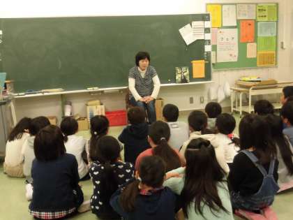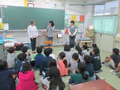 本日、1組は3校時、2組は2校時におはなし会がありました。昔話では、「かしこいモリー(イギリス)」「蛇の食い合い(日本)」「チモとかしこいおひめさま(フィンランド)」を、絵本では「森はオペラ」「ノースウッズの森で」をお話していただきました。子ども達はお話を夢中になって聞いていました。中にはお話の主人公に「頑張れー!」と小さな声で応援している児童もいました。