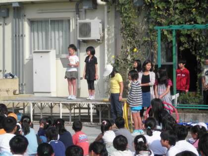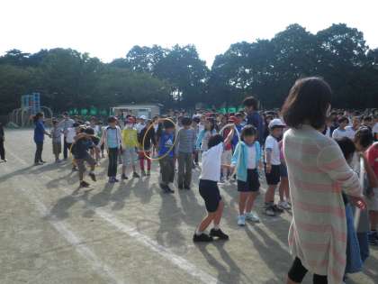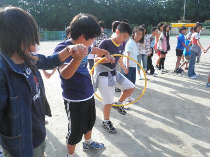 各クラスが一列になって、輪をくぐっていくゲームです。