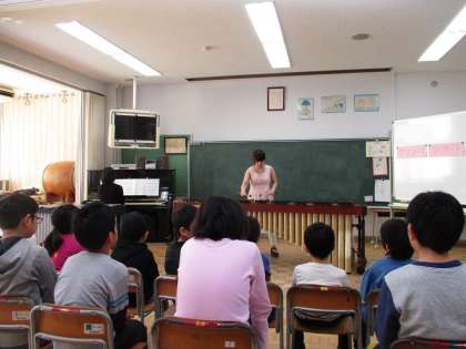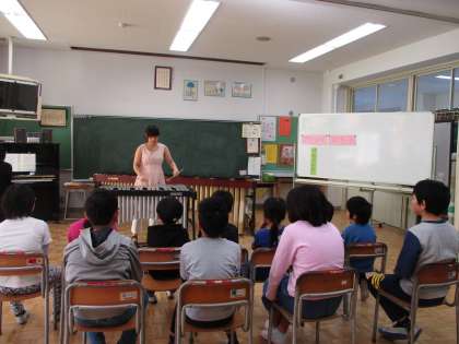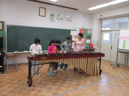 3・4時間目に、つくし学級の学習室で「マリンバ演奏会」を行いました。マリンバ奏者の先生をお招きし、子どもたちの目の前で、演奏していただきました。「剣の舞」の演奏に始まり、「もみじ」「星に願いを」等々を聴き、子どもたちは、音の響きや優しい音色をたっぷりと味わうことができました。また、演奏に合わせて「夢をかなえてドラえもん」や「さんぽ」を歌ったり、ジャンベというアフリカの太鼓に合わせて、打楽器を演奏したりしました。後半には、本物のマリンバとビブラフォンの演奏も体験させていただきました。きれいな音に触れることができた素敵な時間になりました。