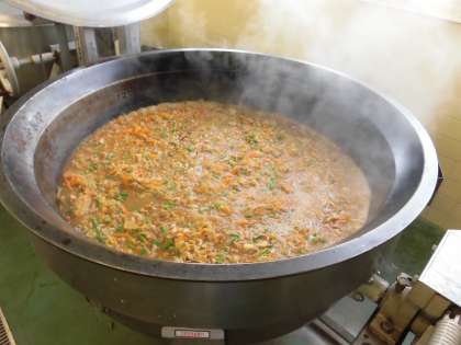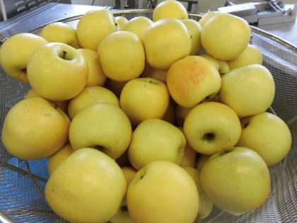 本日のくだものは青りんごです。ていねいに洗い、皮つきで青りんごを出しました。旬の食べ物は味が濃く栄養価も高いなどよい点が多いので、積極的に食べたい物です。具だくさんのぶた丼も好評でした。