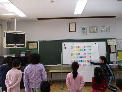 2時間目の国語は、図書の時間でした。10月より導入された「バーコードシステム」に慣れ、図書委員の5・6年生が、「ピッ」とリーダーをかざして本の返却を確認してくれました。下学年の児童が「図書委員さんってすごいね。」とあこがれの眼差しで見ていました。本を返却した子どもたちは、自分の好きな本をゆっくりと選び、新たに本を借りることができました。