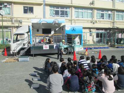 本日、世田谷区防災課の方々に来ていただき、4年生は起震車体験を行いました。実際に震度7の地震を体験し、地震の恐ろしさを感じた児童が多くいました。地震はいつ起きるのか分かりません。実際に地震が起きたときに、この体験を生かして自分自身を守っていってほしいと思います。