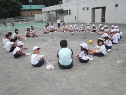 縦割り班でいろいろな場所で、お弁当を食べました。
