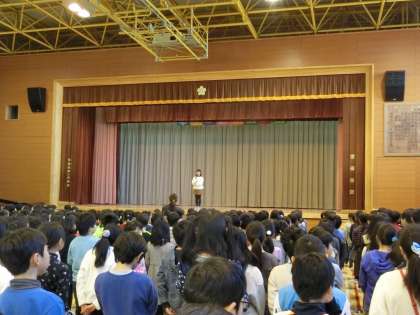 続いて、2年生・5年生の代表児童が2学期を振り返っての話をしました。どの子も自分の成長をよくとらえ、今後に向けての希望に満ちた話をしていました。