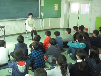 1月の学校公開初日だったこの日、5年生は3・4校時に会議室にて、「おはなし泉の会」による読み聞かせの会を開いていただきました。