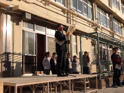 最後に、今週の生活目標「自分からすすんで元気にあいさつをしよう。」についてお話がありました。今日から烏山地域あいさつキャンペーンが始まります。児童と共に、寒さを吹き飛ばす元気なあいさつをしていきます。