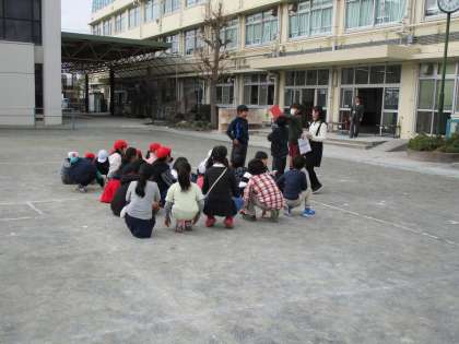 9班、遊びの前の集合の様子、