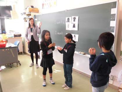 1組は3校時、2組は2校時に英語活動がありました。今日は、衣服についての英語に親しむ学習でした。1組は今日習った単語で、カードめくりゲームを楽しんで行い、2組は前回に習った単語を生かしてカード集めゲーム等、新しいゲームに取り組みました。みな生き生きと沢山の友達とかかわって活動に取り組むことができました。