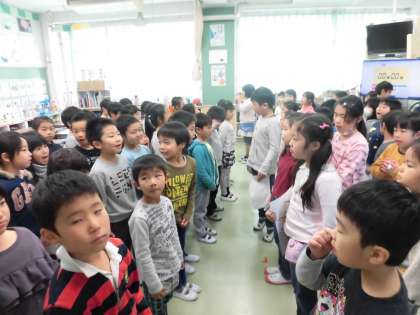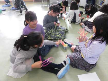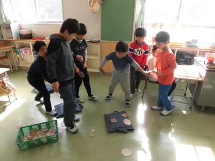 なお、2年2組が学級閉鎖のため、1年2組と2年2組の昔遊びは後日行う予定です。