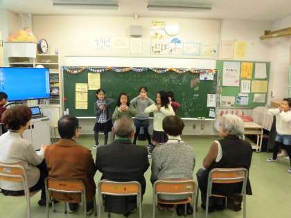 おむかえするために、子どもたちは一生けん命、得意な技やダンスを練習したり、かざり付けを用意したりしていました。お祖父様、お祖母様を前にすると少し緊張していましたが、立派に技やダンスをおひろめすることができました。