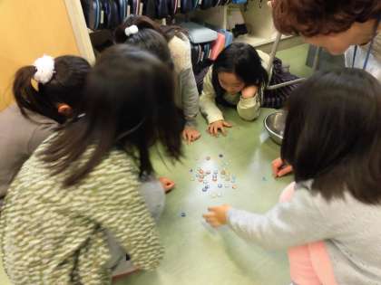 給食後は、みんなでこまやけん玉、おはじきなどをして遊びました。こどもたちは、友だちのお祖父様とお祖母様とふれあえたことが楽しかったようで有意義な一日を過ごすことができました。