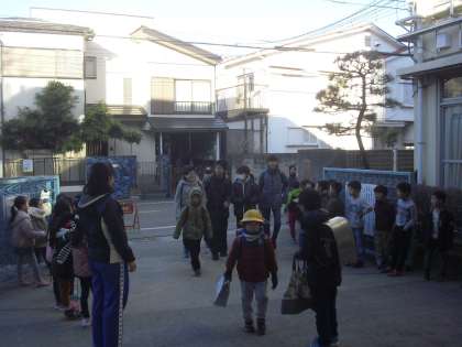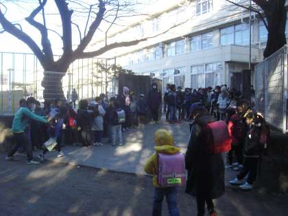 2月のあいさつ週間はこの日が3日目。1年生・3年生・つくし学級の子どもたちがあいさつ運動に取り組みました。