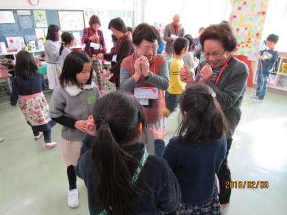 2/9に、2組が子どもたちのお祖父さんお祖母さんをお招きして、ふれあい会、ふれあい給食を行いました。