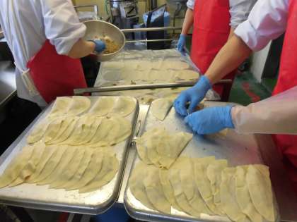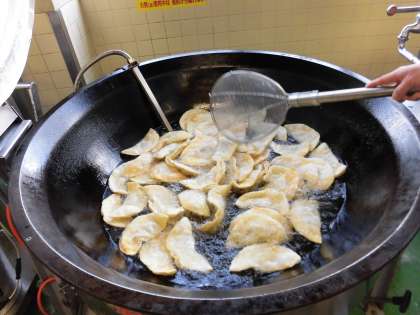 本日はジャンボぎょうざ、烏山小学校では久しぶりの献立です。3月の献立表を見てジャンボぎょうざを楽しみにしていた子どもたちが多くいました。直径16cmの大きな皮で包んだ手作りぎょうざは食べごたえがあります。